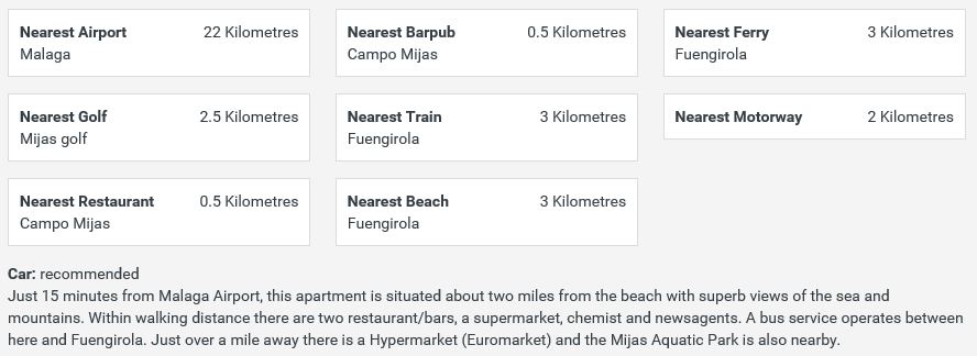Avstånd från Malaga flygplats är 25 km och tar drygt 20 minuter med bil via motorväg AP-7.